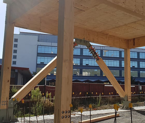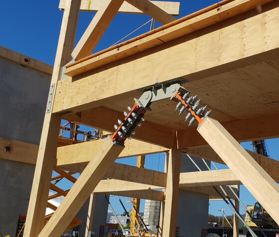 Hutt Valley Health Hub a New Zealand first timber construction health hub adjacent to the Hutt DHB Hospital in Lower Hutt. The Hutt Valley Health Hub was designed to an importance Level 4 with the Structural and Civil engineering teams from Cameron Gibson & Wells Ltd (CGW) to not just withstand a 1 in 2,500 year seismic event, but then be fully operational within 24 hours of such event occurring. The Importance Level 4, Glulam and LVL timber structure was designed in three blocks to individually move in a seismic event and then self-centre itself afterwards. This was achieved by utilising Tectonus technology in the main timber gravity structure to create flexibility between structural members where required.