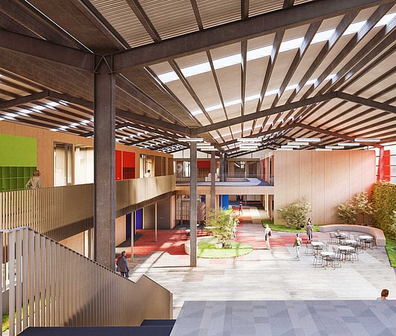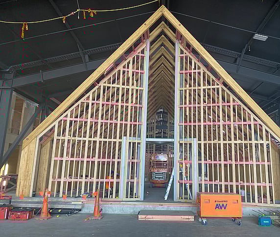 The environmentally friendly reuse of an existing former Foodstuffs warehouse is particularly innovative as we move towards a reuse society. Whilst the site was ideal with its proximity to its brother school, St Bedes College, it became apparent early in the design stages that retaining the structure was the best approach, from a cost, operational and environmental aspect. Marian College school consists of 26 classrooms, a chapel, and a fully-equipped sports hall. All the internal classrooms are constructed from timber frames along with Potius™ Box Panel floors and Roof panels.
